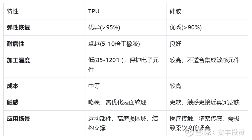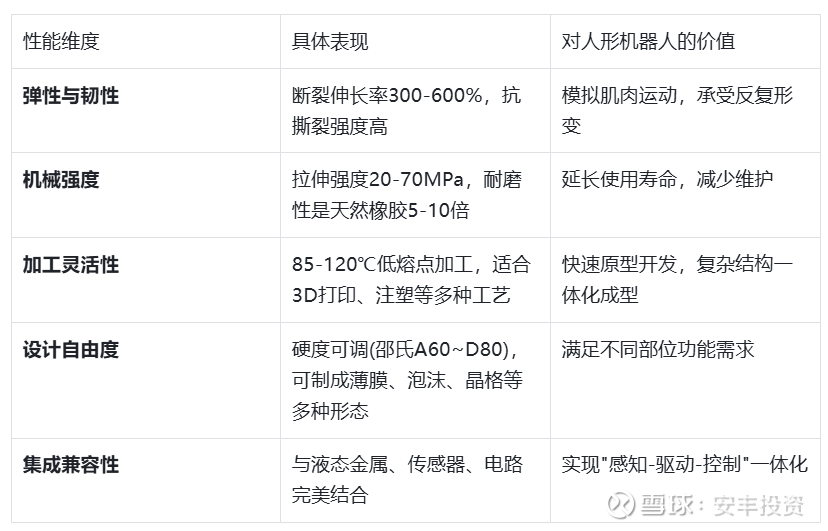 注:随着材料科学不断创新,TPU与其他材料(如液态金属、碳纳米管等)的复合应用将进一步拓展其在人形机器人领域的可能性。