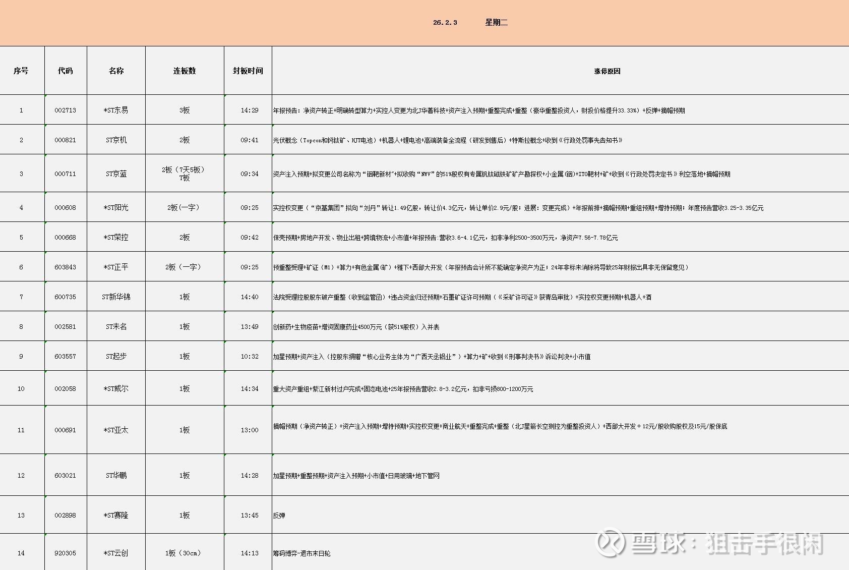 涨停个股