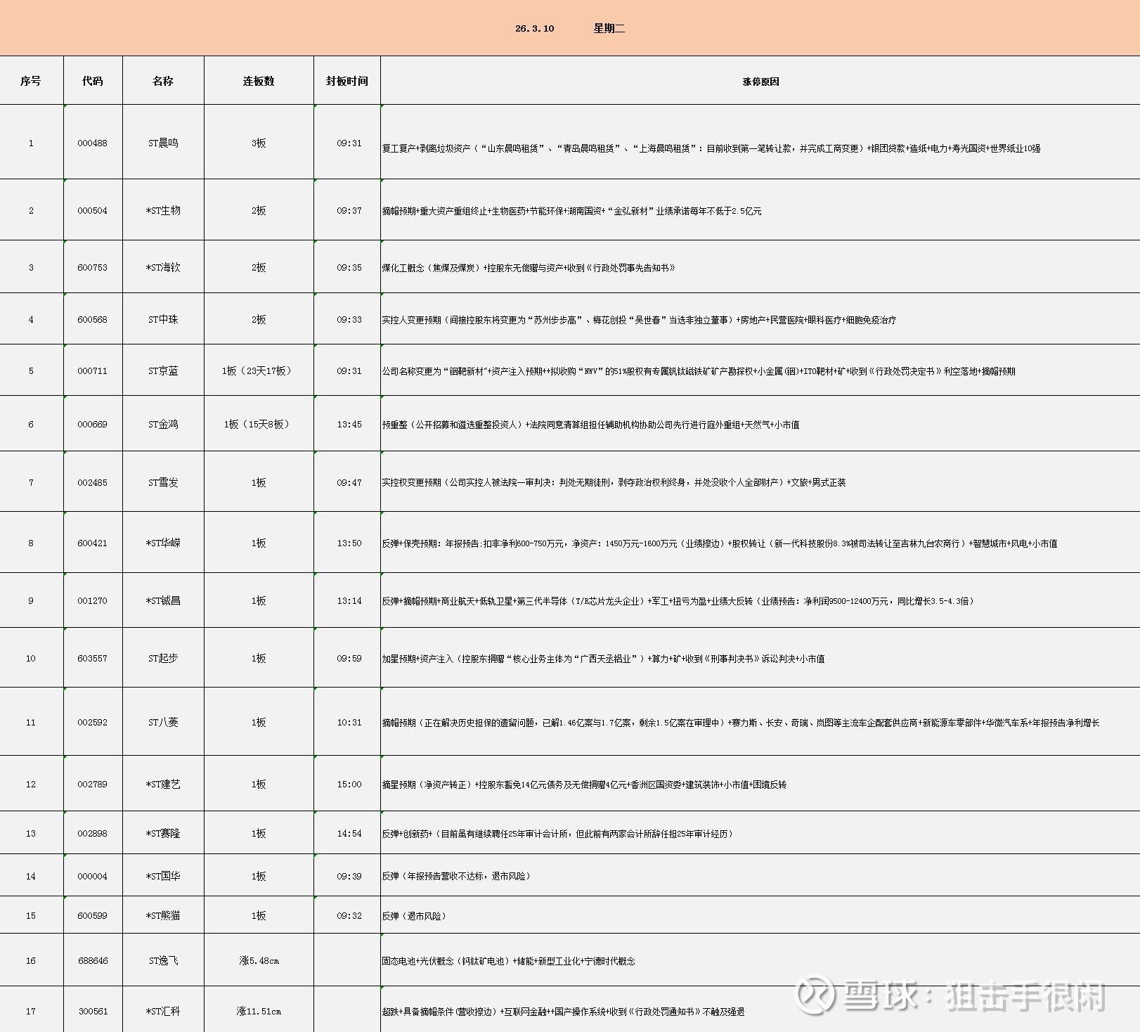 涨停个股