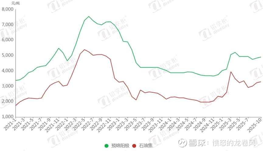 阿拉丁(ALD)调研了解,山东某大型铝厂2025年12月预焙阳极采购基准价环比上调300元/吨,执行现汇价5424元/吨,承兑价格5449元/吨。2025年1-12月份,山东某大型铝厂阳极采购基准价格约4838元/吨,同比去年累计上涨1028.5元/吨,按照吨铝单耗0.48吨阳极测算,全年电解铝企业阳极单项成本同比抬升494元/吨左右。
