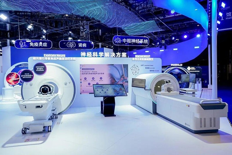 在高端医疗器械方面,复星引进的全球尖端无创治疗技术——磁共振引导聚焦超声脑部治疗系统(“磁波刀”)与全球首款128通道无液氦Marvel MEG脑磁图仪再次亮相进博会,将为帕金森、脑肿瘤、癫痫等常见病提供从精准定位到无创治疗的一体化解决方案。