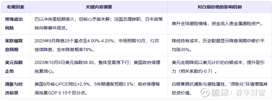 与此同时,宏观经济环境也对白银有利:中东局势持续动荡,地缘政治风险推高避险需求;美联储9月降息25个基点,市场预期年内再降息两次;美元指数走弱,与白银价格呈高度负相关;通胀预期仍高于美联储目标,白银兼具避险与抗通胀双重属性。