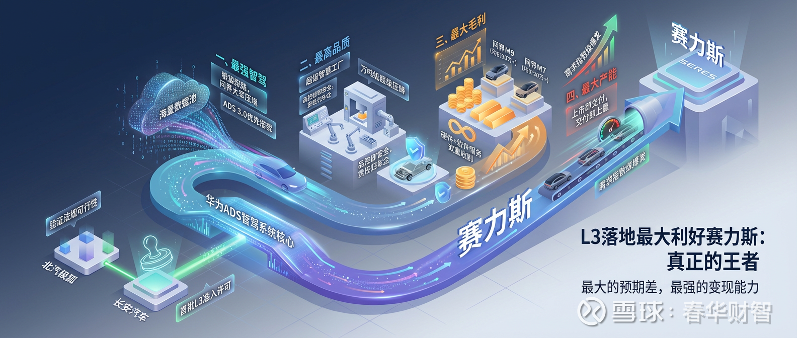 很多人只看到了北汽涨停,却没看懂背后的底层逻辑:北汽极狐获批,本质上是华为ADS智驾系统的获批。一旦华为ADS拿到了L3的通行证,谁是华为智选车模式下销量最大、车型最高端、合作最紧密的车企?答案只有一个:赛力斯。不要被短期的名单迷了眼,赛力斯才是L3商业化落地的真正王者,理由有四: