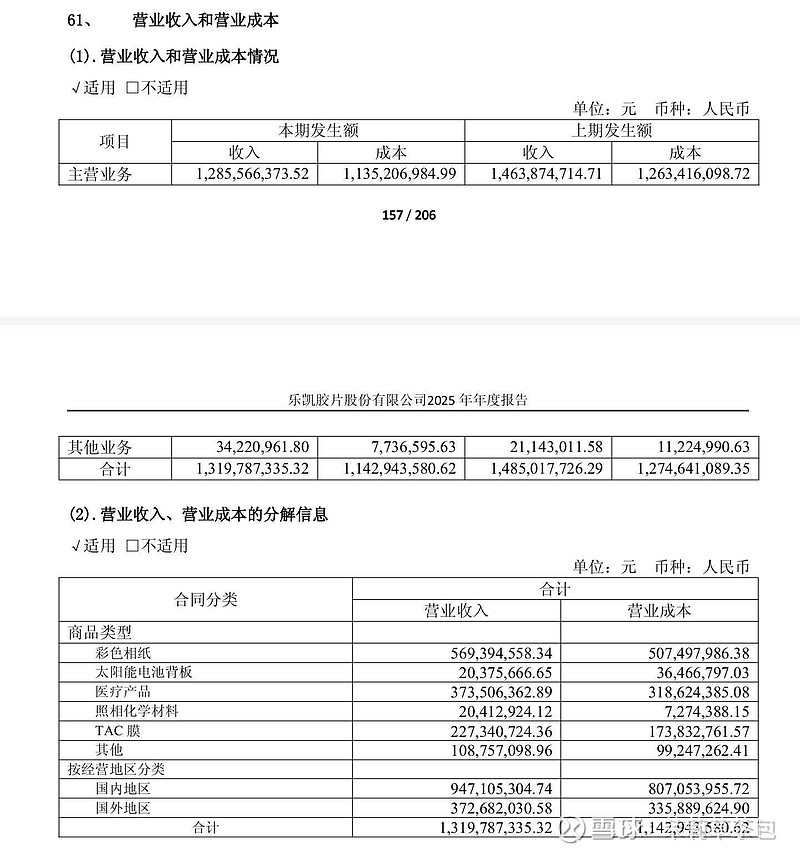 $乐凯胶片(SH600135)$ 好了,这么多天不披露业务,今天一下蹦出来这么多,这就是凯子作为央企的傲气么。业绩方面四季度亏损收窄,主营业务对比去年,相纸、胶片不说了,正在产业转型,收入和毛利率减少也情有可原,但太阳能电池背板、TAC膜和锂电池隔膜也太差劲了。