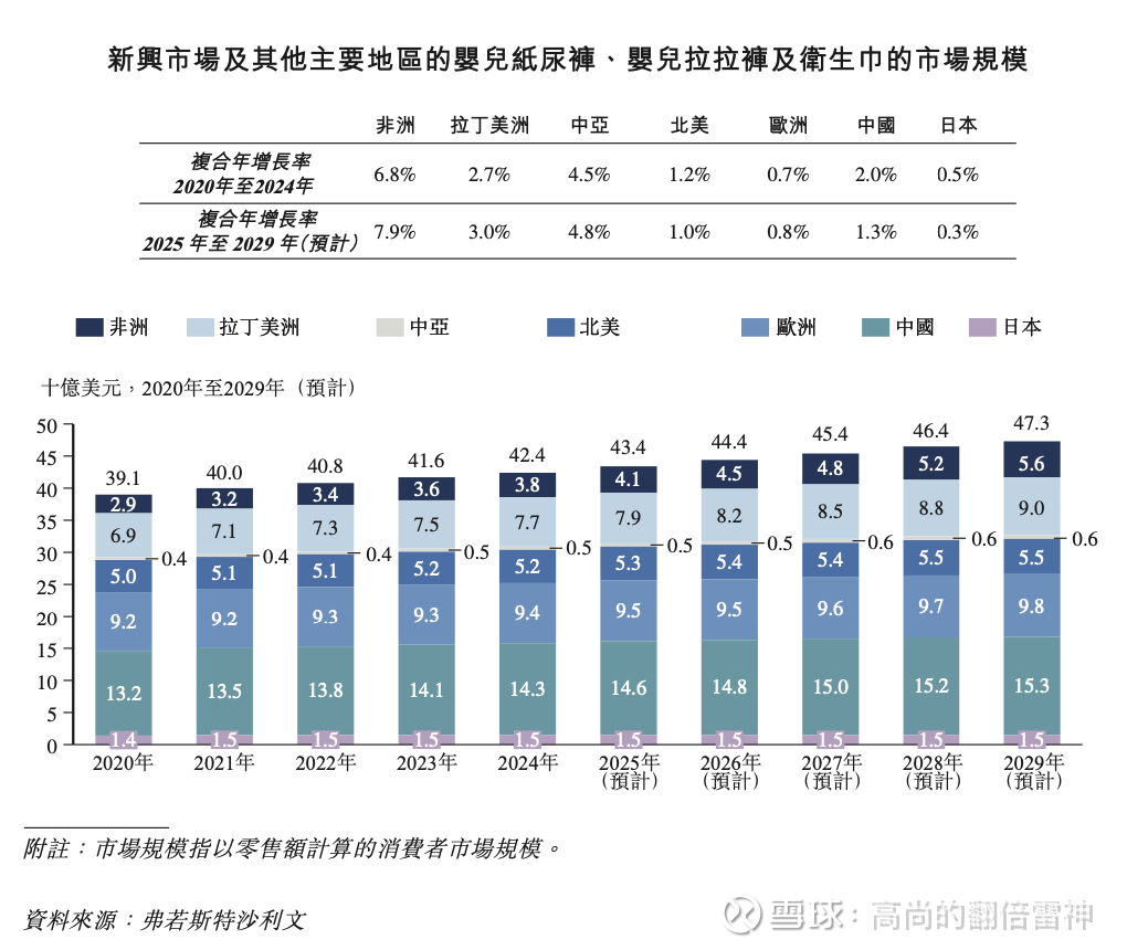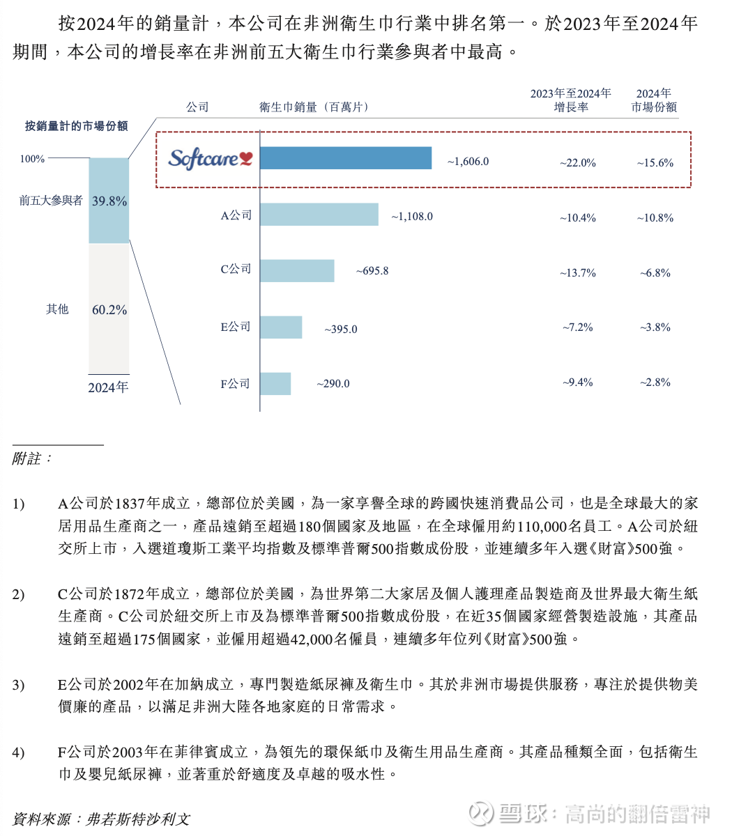 “2024 年,非洲的嬰兒紙尿褲及嬰兒拉拉褲市場滲透率約為20%,低於嬰兒紙尿褲及嬰兒拉拉褲在歐洲、北美和中國市場介乎約70%至86%的滲透率,而非洲的衛生巾市場滲透率約為30%,亦低於類似產品在歐洲、北美和中國市場介乎約86%至92%的滲透率”。