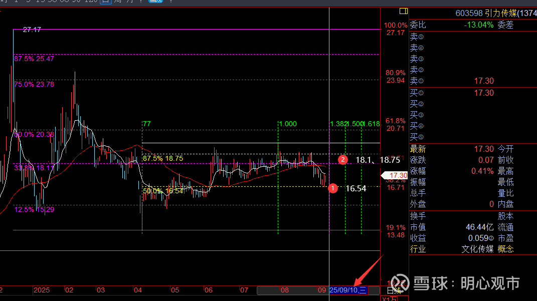 回复@平安富贵哟: $引力传媒(SH603598)$ 近期的这波回撤,趋势,跌破白线、红线后是转空态势;价格,在黄线的半分位16.54处获得支撑,目前反抽白线还未站上,反压18.11、18.75,暂时就是在16.54-18.75区间内震荡,后续能突破到18.75上方,再看20.38;时间,周三是382窗口,能跃过去的话,支撑的有效性更强。查看图片//@平安富贵哟:回复@明心观市:老师,可以帮忙看看引力传媒吗?谢谢!