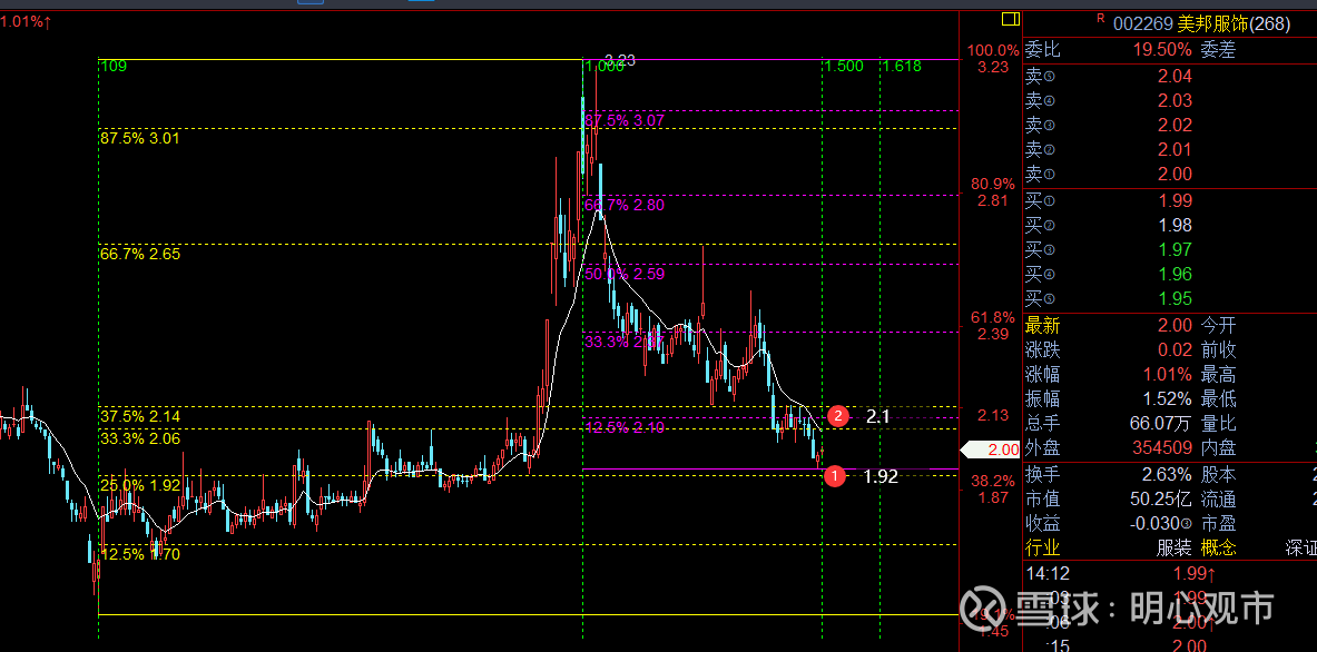 回复@早日财富自由飞翔: $美邦服饰(SZ002269)$ 周五空间上探到了下四分位支撑,时间,今天是1.5倍窗口,K线上有止跌信号但是趋势仍为转多;当前来说,支撑1.92支撑在,可先跟踪对2.1的反抽,能突破到2.1上方,则这波调整结束,低点安全,再顺势看高2.37、2.59;时间上,这里支持做多,风控1.92查看图片//@早日财富自由飞翔:回复@明心观市:美邦服饰怎么看。老师