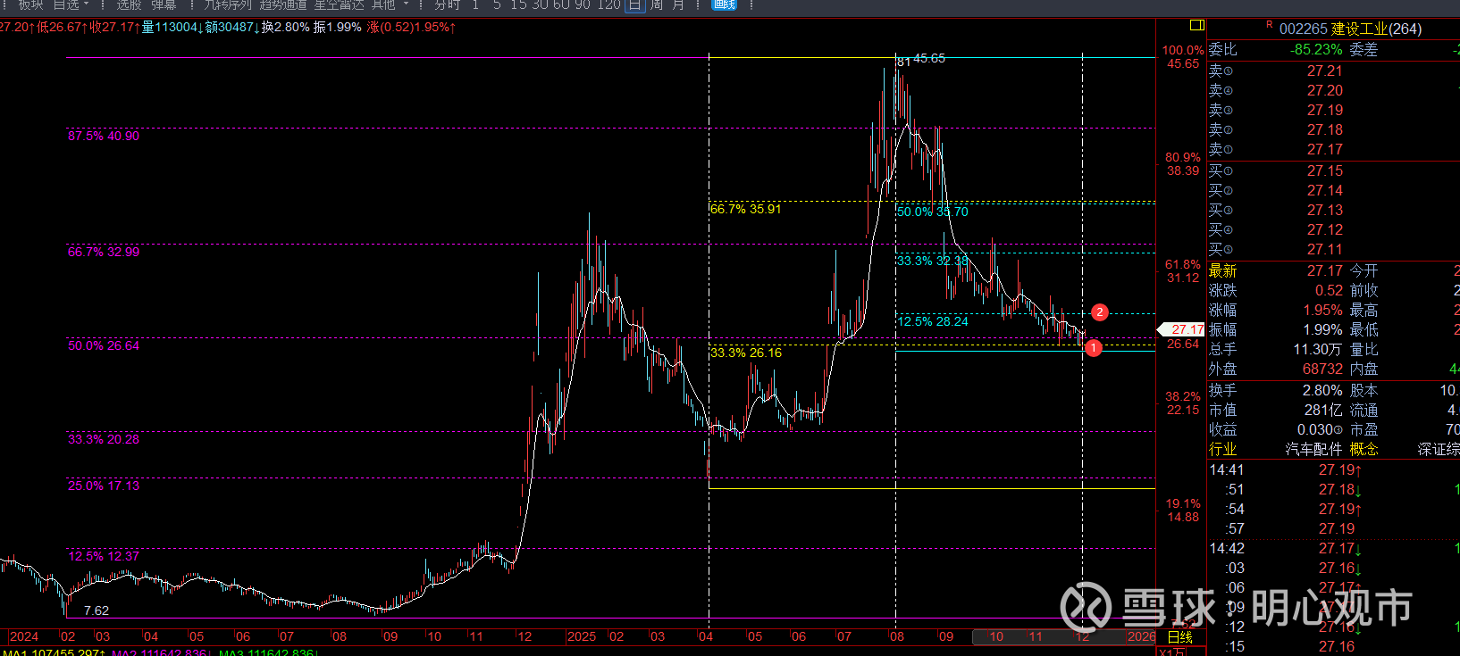 回复@理耶耶: $建设工业(SZ002265)$ 周五这个次级别的对称窗口在大级别半分和3分价格共振位有时价止跌属性,今天在突破白线,短趋势有转多信号,这里可维持关注;价格上,当前支撑26.64-26.16,反压 先看28.24,能站上则代表底部安全,可进一步跟踪反弹32.38、35.7方向;风控参考26.16,风控位不丢,可重点看 这个底部的构筑和走出查看图片//@理耶耶:回复@明心观市:老师 看一下襄阳轴承和建设工业