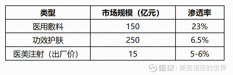 注射类分为四大材料:玻尿酸,肉毒素、再生材料以及胶原蛋白。锦波生物2025年器械收入大约13-14亿元。目前整个重组胶原蛋白医美市场几乎为锦波生物一家垄断,推算重组胶原蛋白医美注射,按照出厂价算最多15亿元,占整个胶原蛋白市场45%计算,推算整个胶原蛋白医美市场出厂价大概33亿。外加玻尿酸100亿出头,肉毒素100亿,以及再生材料小几十亿,注射类器械出厂价250-300亿之间,终端零售按照850计算,对应为出厂价的3倍,基本复合逻辑。重组胶原蛋白在医美渗透率仅为5-6%之间。