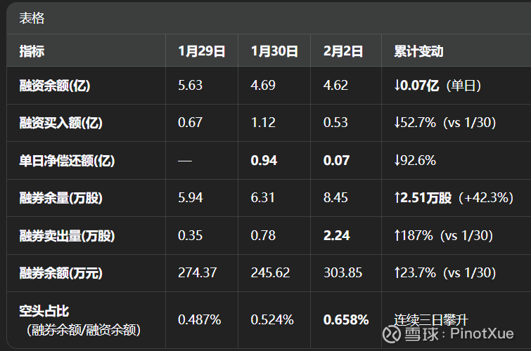 $新诺威(SZ300765)$ 结合近三日的融资融券数据来看,连续两天的急跌,融资盘净偿还过亿,特别是上周五大跌当日的恐慌性平仓压力已经得到缓解。回过头看既是部分资金获利兑现,也是风险的一次集中释放,没能躲开确实对短期收益影响很大。今日盘中突然急拉,也许能看作是多头的反扑,但持续性如何仍是存疑的。明天再观察2月3日的数据,再做判断,在此之前,继续躺好。
