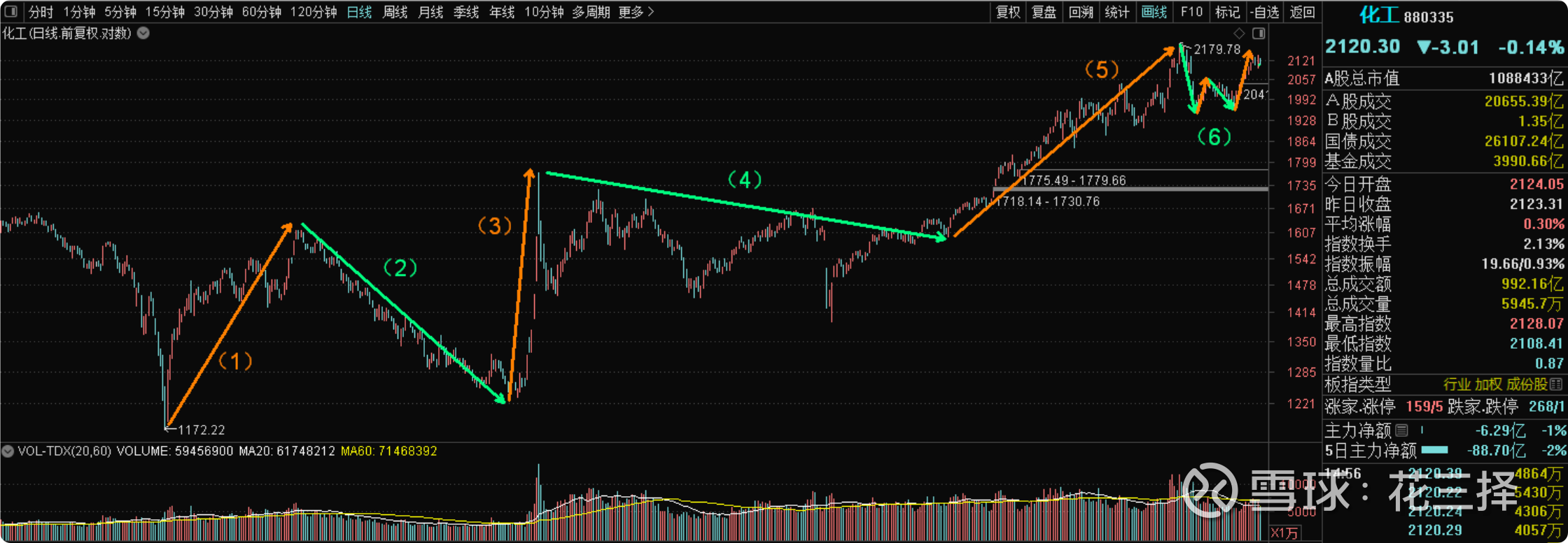 现处于第6浪中,我猜测是头肩底形态的整理,节后要继续调整一段,然后开展下一段上涨。见下图。