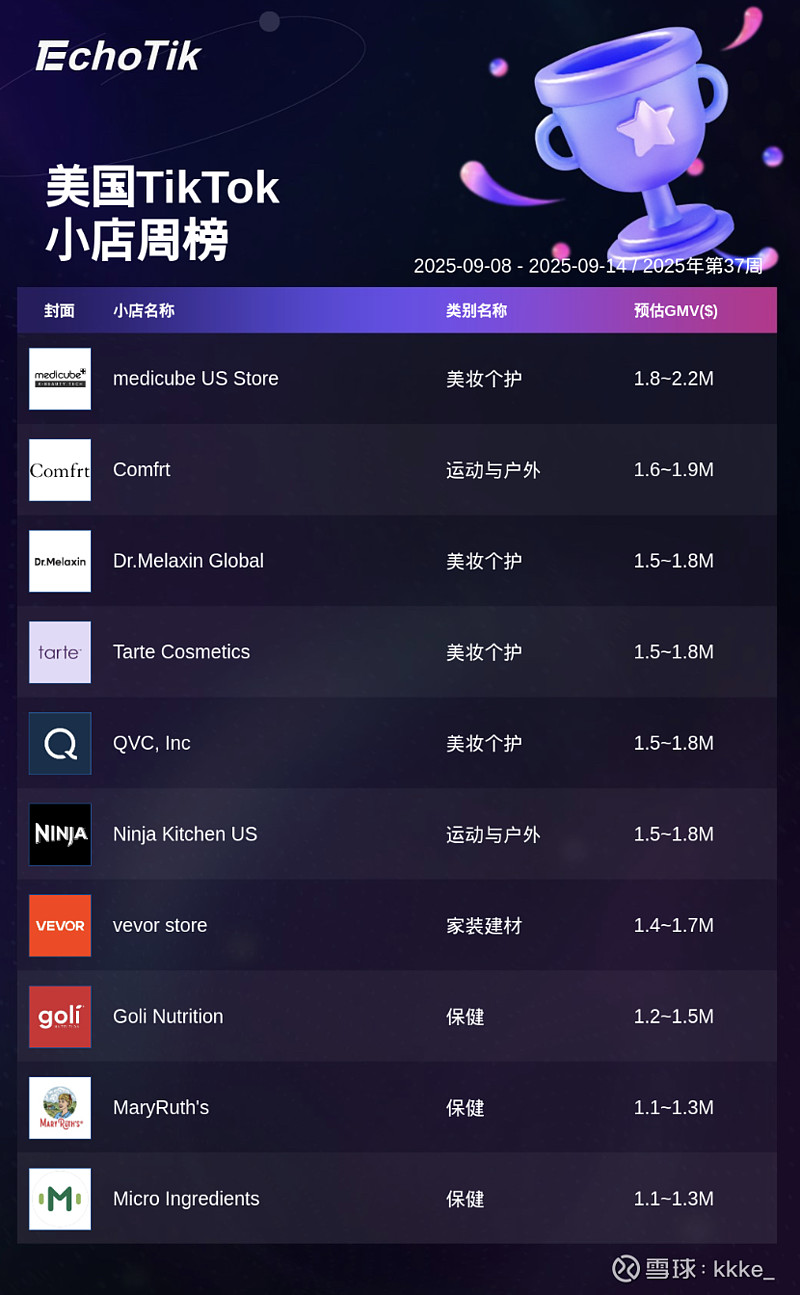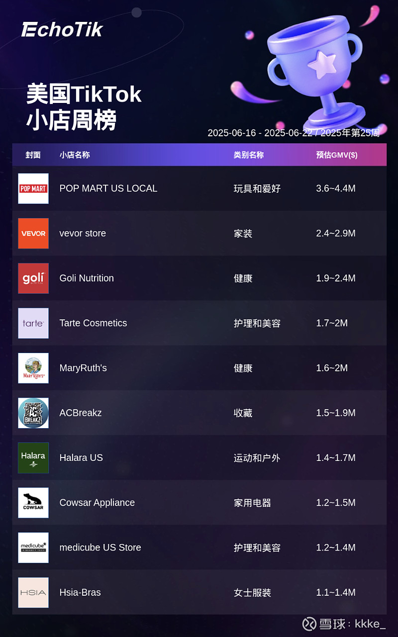 $泡泡玛特(09992)$ 怀疑这才是摩根大通看低泡泡玛特的原因,泡泡玛特美国区的 tiktok 业务已经低迷一段时间,最新的统计已跌出tiktok店铺周前10名,而在 7月前泡泡玛特几乎长期霸榜第一名,到 7 月中的时候还能维持一段时间在前3名,8月中旬以后开始走下坡,9月开始泡泡玛特掉出前10。