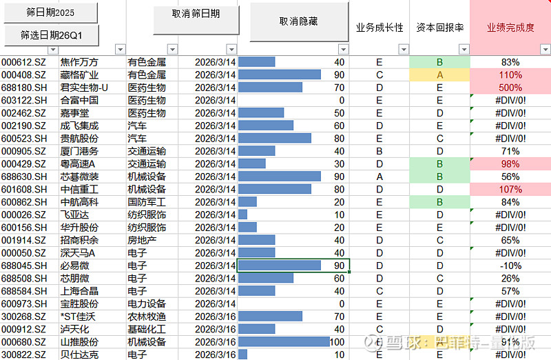 2025年报评分看板vol.2:周五和周日共25家公司发布年度报告,臭鱼烂虾居多其中$合富中国(SH603122)$模型给了0分, 但股价一度翻了五倍,翻找到原因的我深感自己的想象力不足价值投资老实人建议关注下模型给分最高的$山推股份(SZ000680)$ ,环比数据不错,盈利质量很高,以前给估值折价的点都在好转。山推是俄乌冲突以后纳入本人视野的,因为西方设备暂停入俄,挖战壕要用等,这回可以看看中东战事能否给公司带来新的变化。(划掉,愿世界和平)