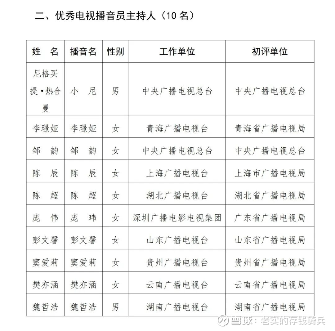 《关于公示第3届中国播音主持“金声奖”评选结果的通知》显示,入选优秀电视播音员主持人的有10名,包括尼格买提、邹韵、陈超等人。