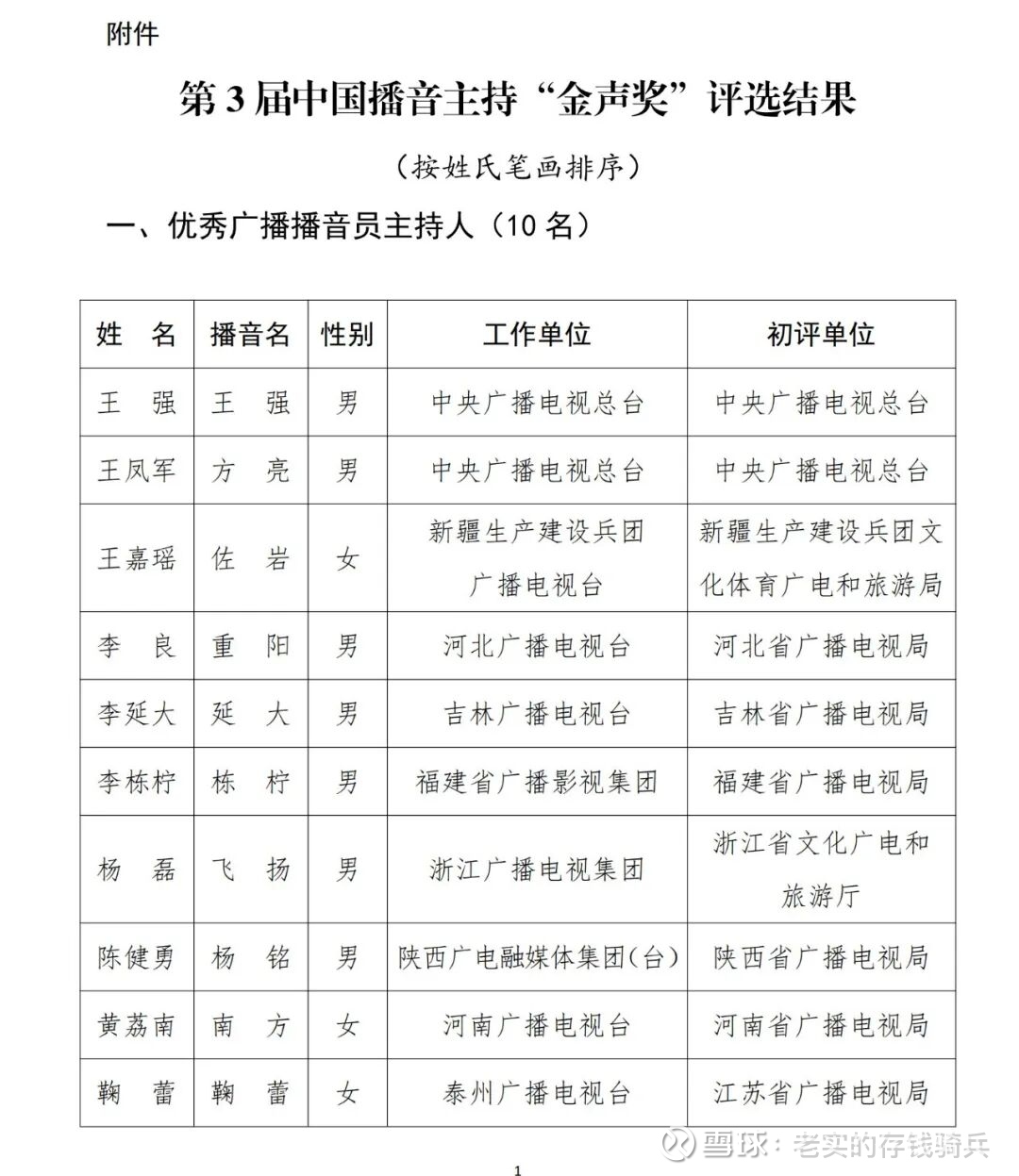 《关于公示第3届中国播音主持“金声奖”评选结果的通知》显示,入选优秀广播播音员主持人的有10名,包括王强、方亮等人。