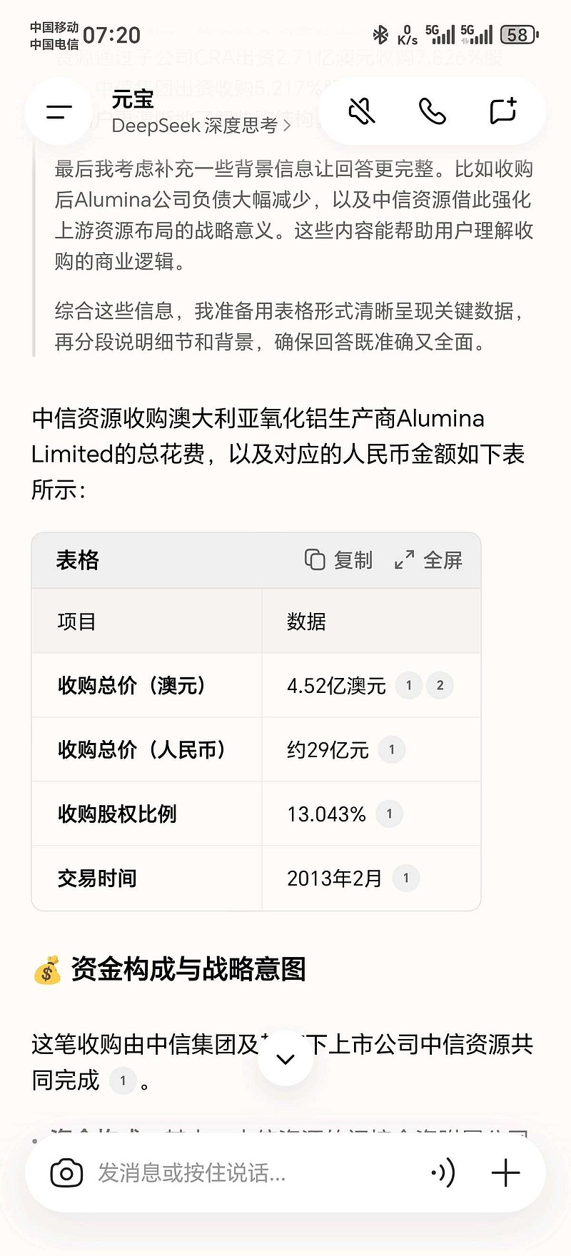 $中信资源(01205)$ 这笔卖出长期来看很难确定是否盈利。从卖出价看,当时收购氧化铝价格为29亿人民币,按现在美铝估值可能约在38亿人民币左右,考虑到时间节点2013年,十二年时间,氧化铝被美铝收购,这笔资产从交易上来说,变得更容易交易,但从实际节点上而言,考虑到每年的资产增值,并不是很赚钱,但,总算没亏。说句老实话,中信旗下,这个资源平台,长期在净资产下运行(1元人民币),甚至被踢出港股通,管理层做的真的很差,特别是今年(25年)盈利居然腰斩。在所有资源类井喷近三年的整体情况下,也是没谁了!
