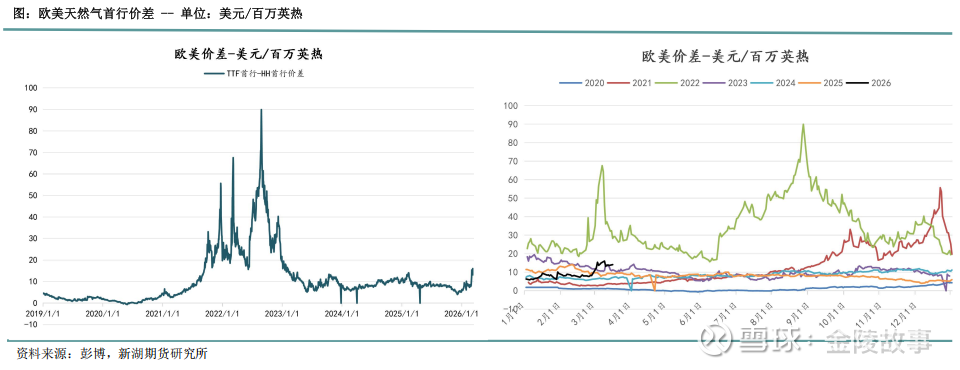 第二,波动性较危机期间有所下降,但仍远高于历史均值。任何供应端扰动(如挪威气田检修、澳大利亚LNG工厂罢工威胁)或需求端变化(寒潮、可再生能源 产出 波动)都会引发TTF价格剧烈反应,而HH价格的反应相对温和,导致价差波动频繁。