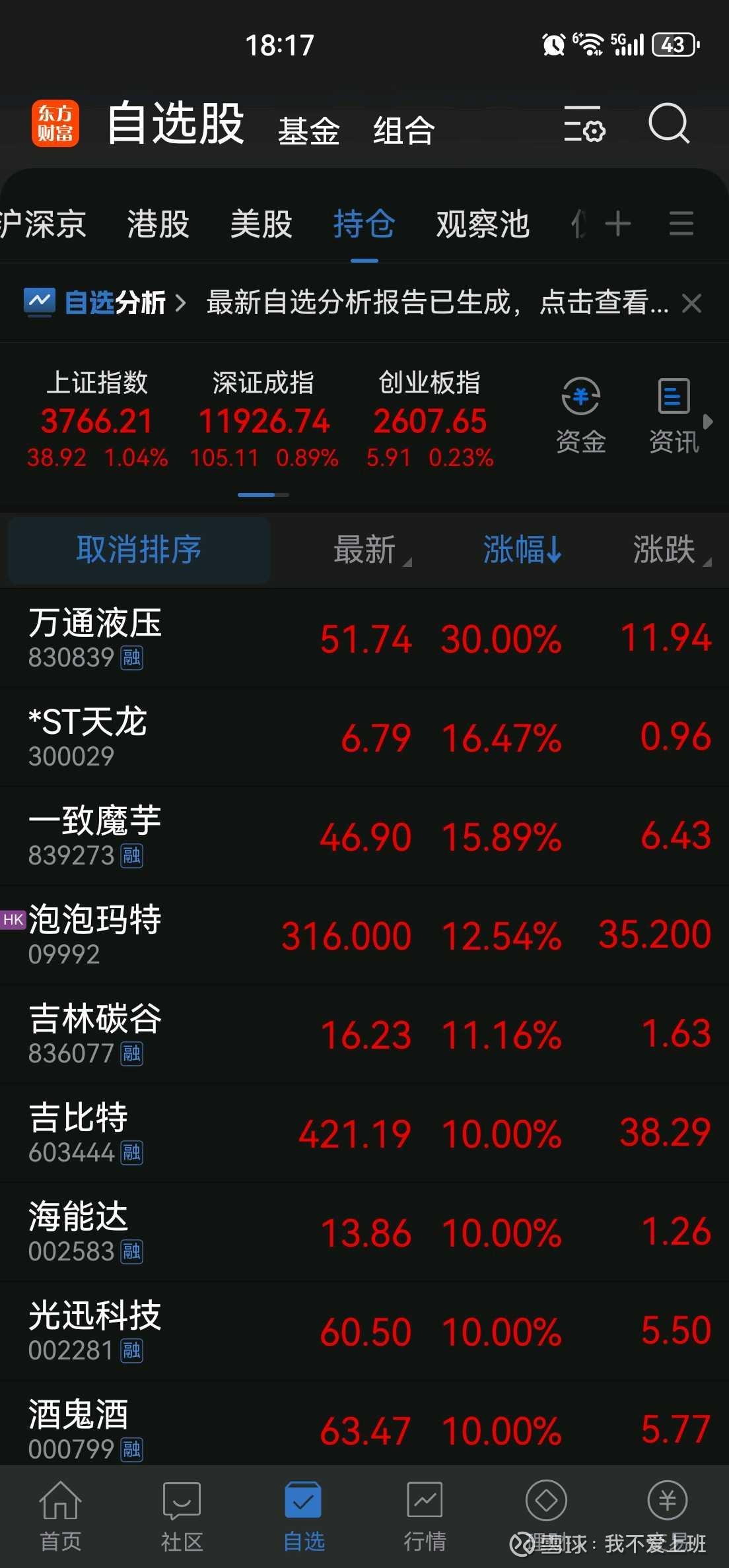 今天唯一有点高兴的是持仓吃到了第二个30厘米,遗憾的是只买了观察仓。