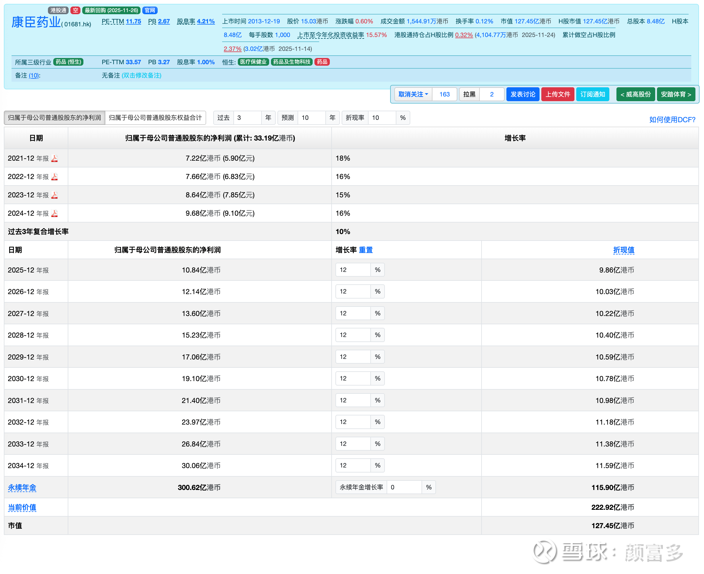 $康臣药业(01681)$ ,本文将使用DCF和市赚率PR进行估值。