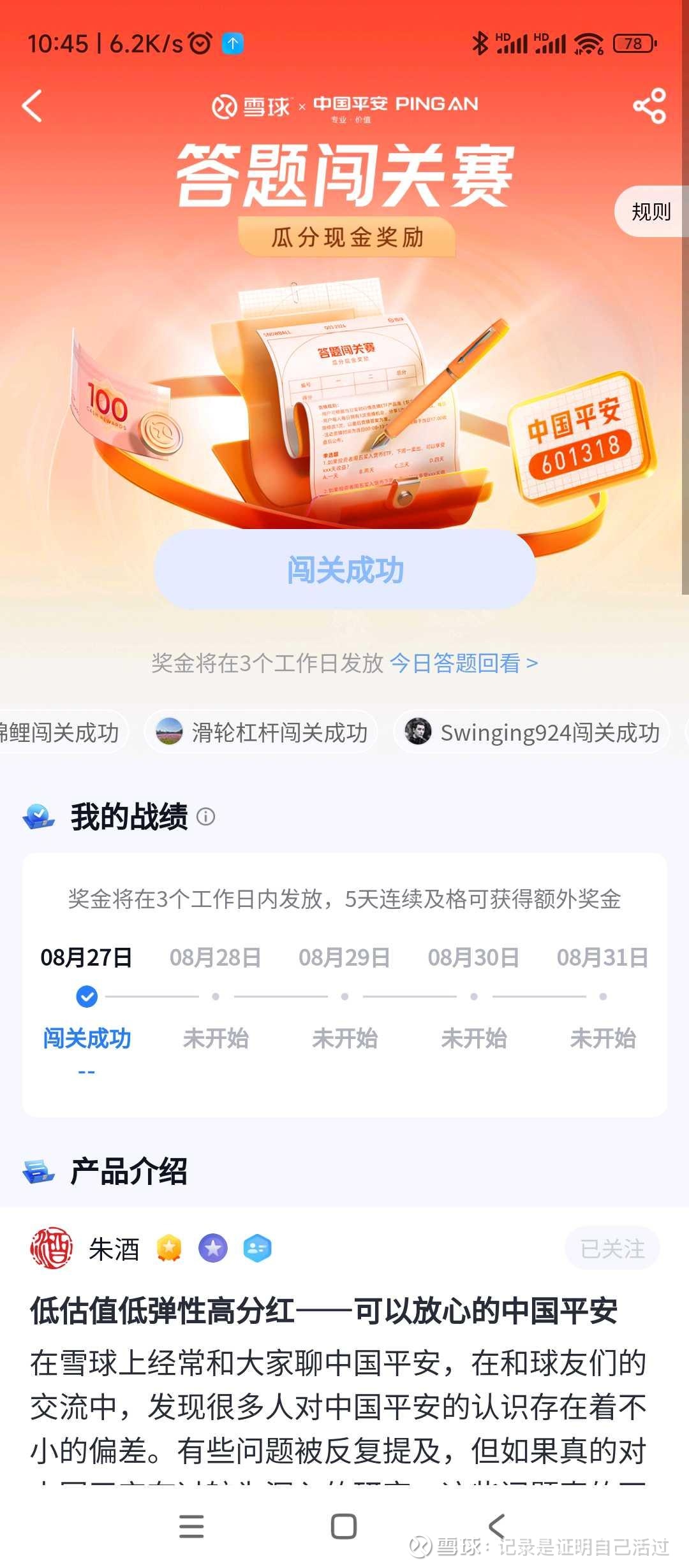 #答题闯关赛# $中国平安(SH601318)$ 中国平安凭借多元化的业务布局和稳健的经营策略,持续巩固其在金融保险领域的领先地位,业绩表现优异,展现出强大的抗风险能力和盈利稳定性,投资价值日益凸显。随着我国金融市场的不断发展和居民财富管理需求的持续增长,中国平安有望通过综合金融服务优势,进一步拓展业务边界,提升市场份额,为投资者带来长期且可观的回报。查看图片
