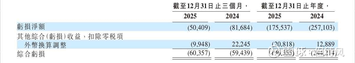 2025年全年净亏损1.755亿美元,同比收窄31.73%。