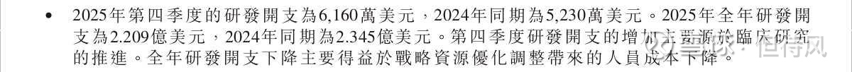再看研发开支:全年2.209亿美元,同比下降6%。但注意,Q4的研发费用其实是增加的——6160万 vs 5230万。