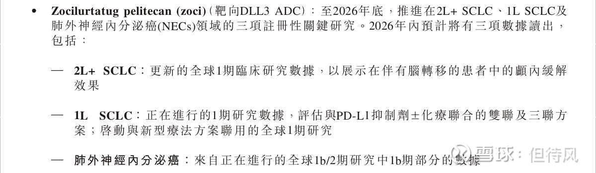 而且,2026年内会有三波数据读出:脑转移患者的颅内缓解效果、联合PD-L1抑制剂的数据、神经内分泌癌的1期数据。