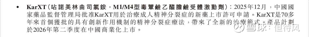 精神分裂症几十年来的首个新机制药物,2025年已经在中国获批,计划2026年上半年商业化上市。