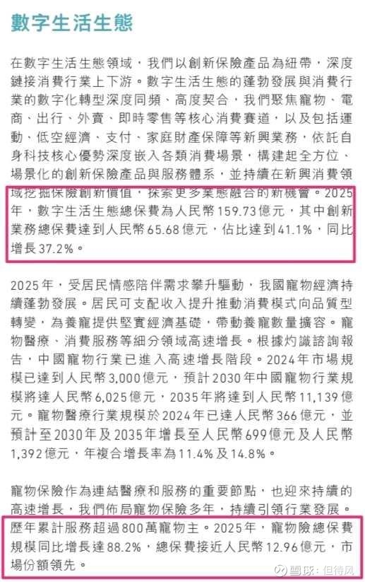 在这个生态里,有一个特别亮眼的业务——宠物险。2025年,宠物险总保费同比增长88.2%,达到近12.96亿元。
