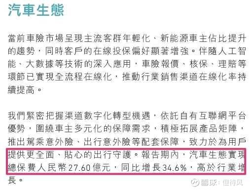 汽车生态也在发力,全年总保费27.60亿元,同比增长34.6%。