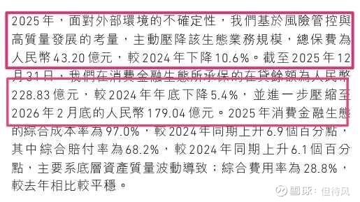 截至2025年末,众安所承保的在贷余额为228.83亿元,较上年末下降5.4%,到2026年2月末进一步压缩至179.04亿元。