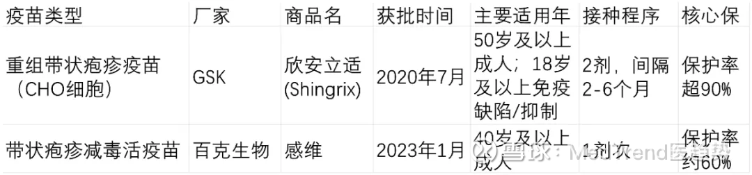 目前,在中国市场上,有两款带状疱疹疫苗可供选择,分别是GSK公司生产的重组疫苗“欣安立适”和百克生物自主研发的国产减毒活疫苗“感维”。