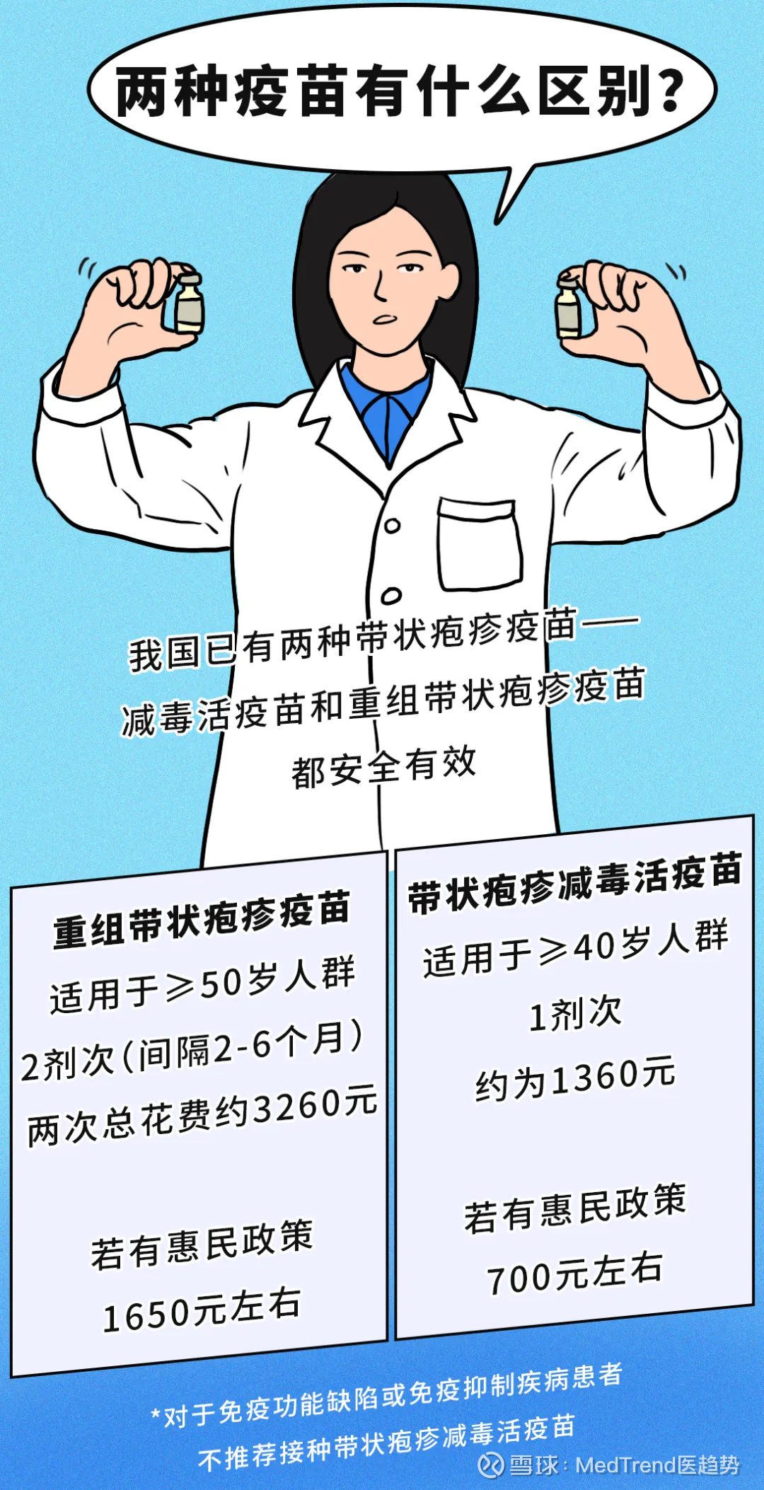 对于这种“最疼皮肤病”中国有两款带状疱疹疫苗上市,一款是重组疫苗,由GSK研发、智飞生物代理,需接种2针,50岁以上人群可接种;另一款是减毒活疫苗,由百克生物研发,只需接种1针,40岁以上就可接种。