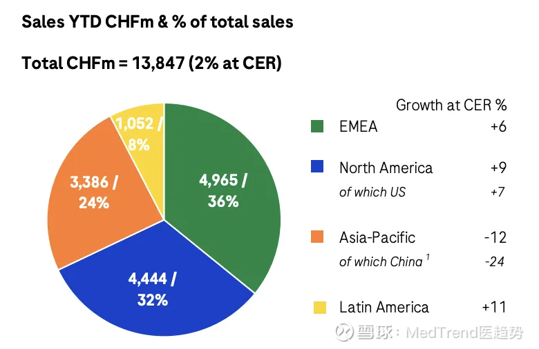 诊断业务:营收138.47亿瑞士法郎(约167.53亿美元),同比-3.3%。
