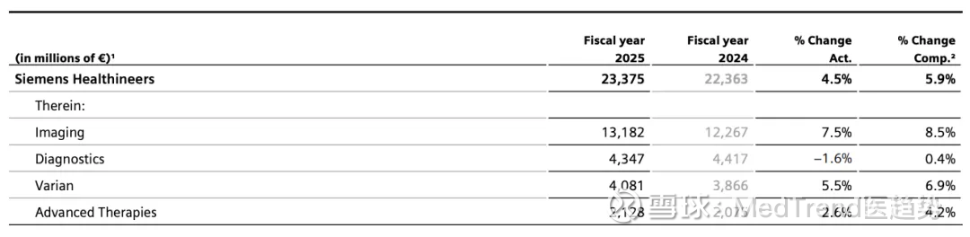 财报中还给出西门子医疗区域营收数据,2025年诊断业务占总业务的18.6%,可以粗略判断。