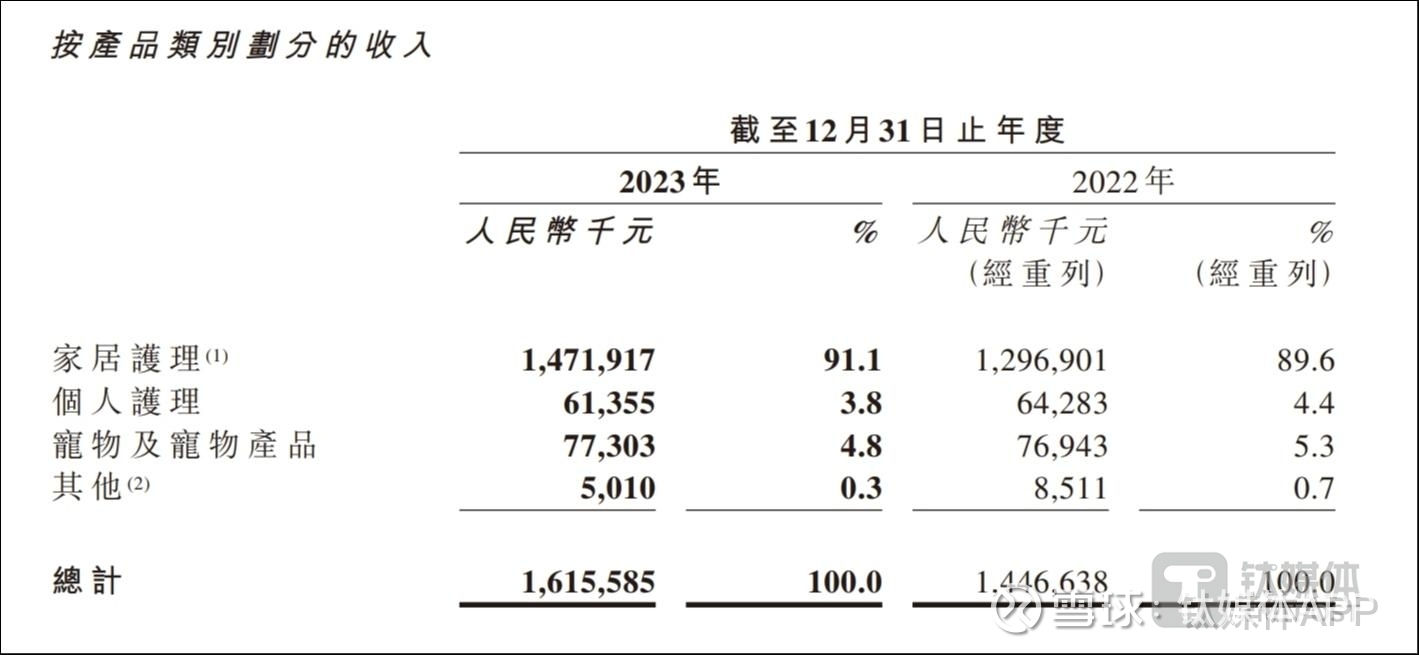 2023年,家居护理产品类别实现收入约14.72亿元,同比增长13.5%,为公司收入的主要来源,占比高达91.1%;宠物及宠物产品类别实现收入约0.77亿元,同比增长0.5%;个人护理产品类别实现收入约0.61亿元,同比减少4.6%。
