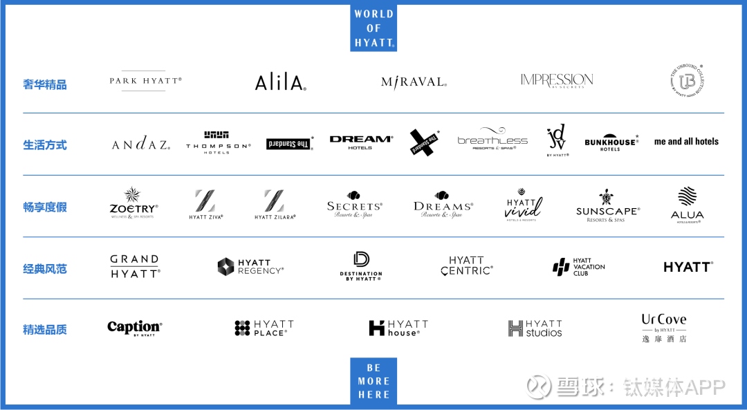 据凯悦官网显示,凯悦目前在泛中端市场(包括中端和中高端酒店)已经有了5个品牌,分别是凯悦嘉荟酒店、凯悦嘉轩酒店、凯悦嘉寓酒店、Hyatt Studios以及逸扉酒店(凯悦与首旅的合作品牌)。
