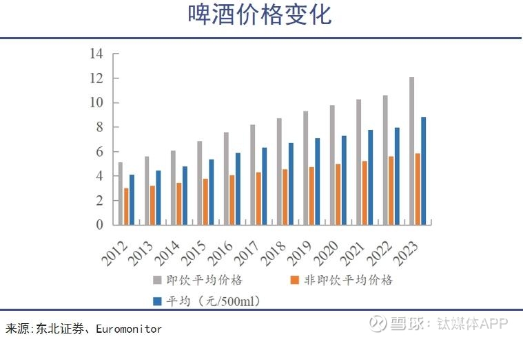 相比白酒,啤酒价格本身比较便宜,价格带差距更小。按零售价划分,低档啤酒价格小于6元,主流啤酒价格6-8元,次高档啤酒价格也不过8-10元。如果产品本身能在口感、配料、包装与品牌表达上匹配消费人群的心理预期,价格上的微幅提升并不会成为购买阻力。