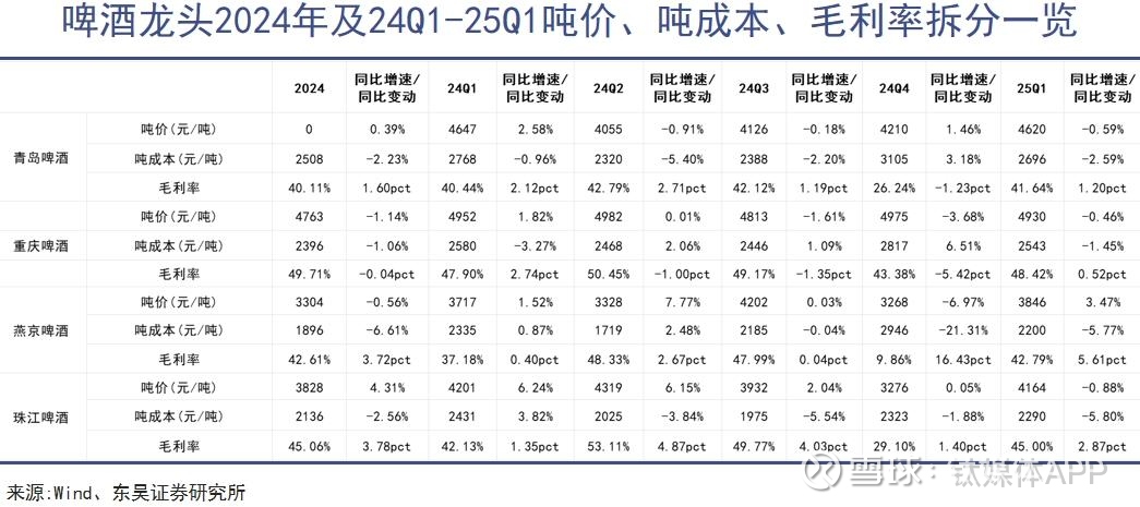行业内部的表现分化也较明显。燕京等吨价偏低的企业,借助次高端产品实现利润显著修复,而部分早已布局高端的龙头企业,如青岛啤酒,高价产品则出现了增长瓶颈。这都是用户对于价格与品质关系重新评估的结果。