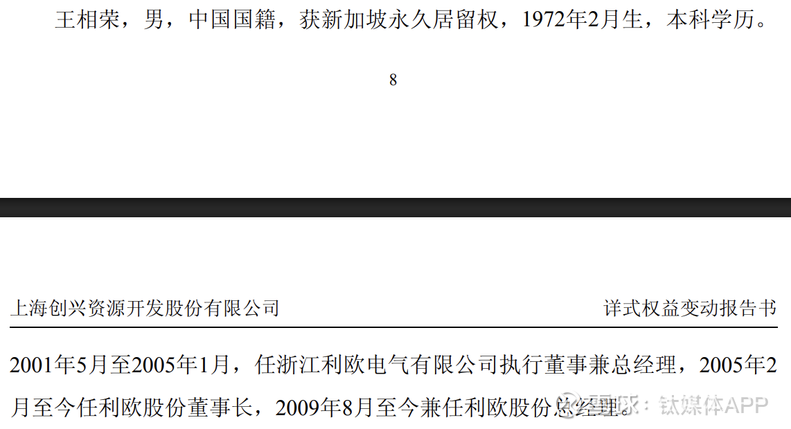 王相荣以“水泵大王”起家,近年因带领利欧股份(002131.SZ)并购“狂飙”成功转型、大胆投资SpaceX、早期布局理想汽车斩获丰厚收益而在资本市场声名鹊起。此次入主*ST创兴展现其一贯的操盘功力:在*ST创兴原控股股东危机之际,联手2位温岭老乡一天内竞得*ST创兴15.76%股权,最终其本人仅用1.53亿元便撬动*ST创兴控制权。