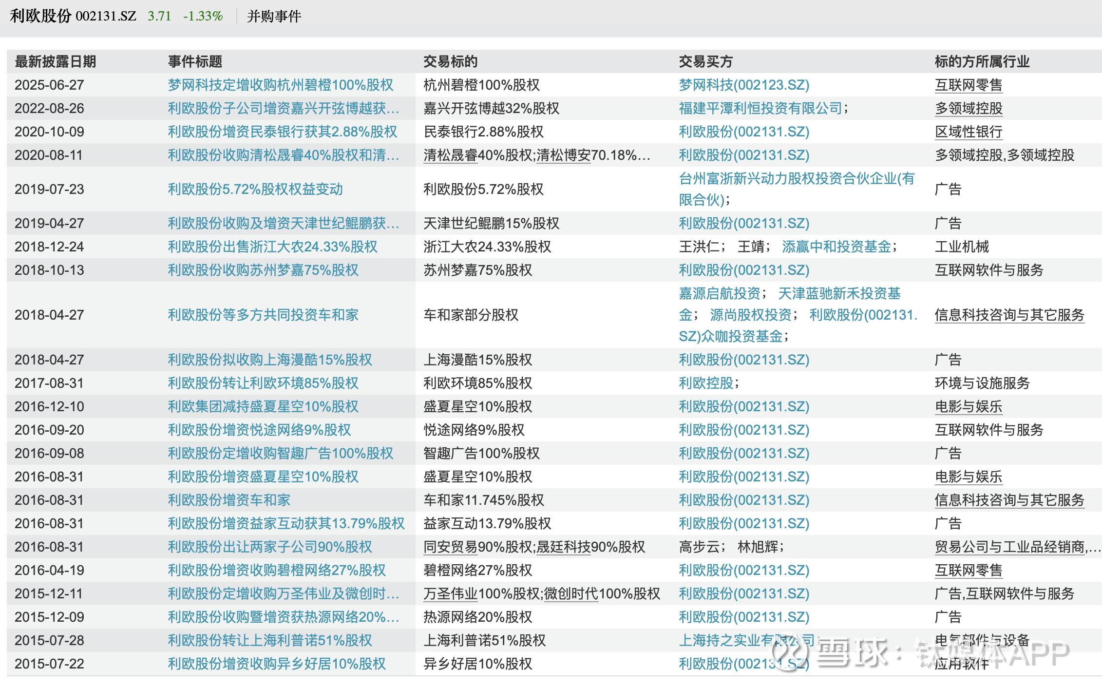利欧股份并购事件梳理,表格来源:Wind