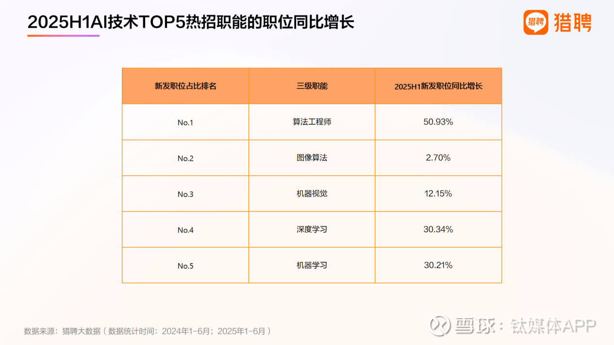 2、AI技术热招职能:算法工程师、深度与机器学习类职位增速超30%