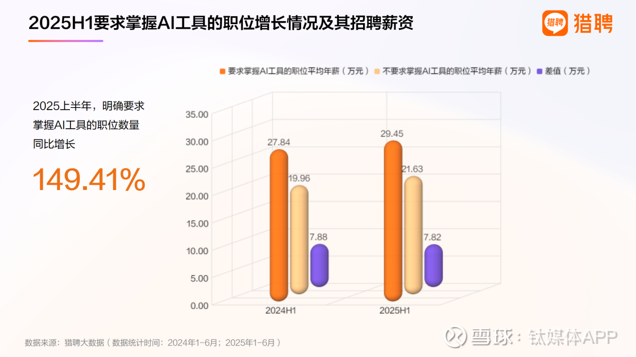 1、要求掌握AI的职位激增,比无此要求的职位整体年薪高近8万