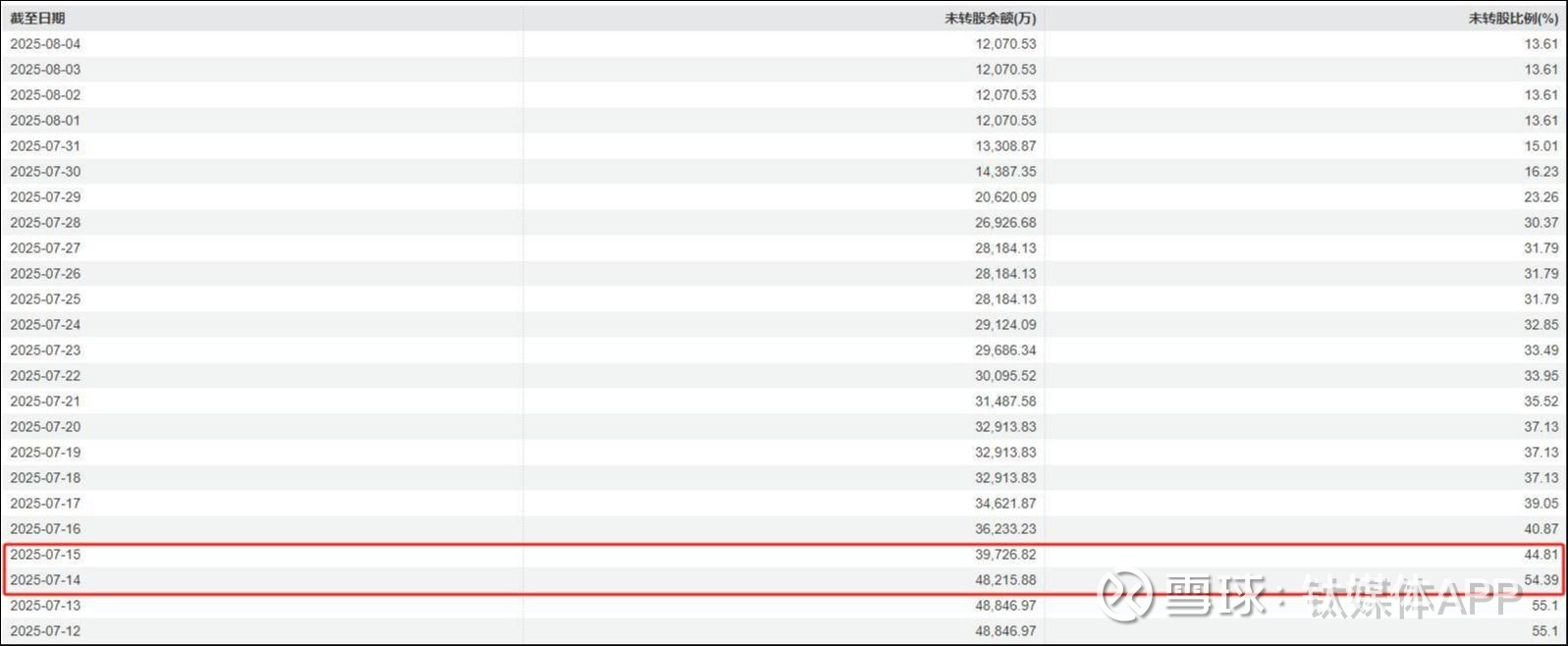 该消息意味着,投资者若未在规定时限内通过二级市场继续交易或者进行债转股,就只能被强制赎回,可能面临较大投资损失。受此消息影响,“永安转债”未转股比例迅速下降至50%以下。截至8月4日,未转股比例仅有13.61%,距离化债成功仅一步之遥。