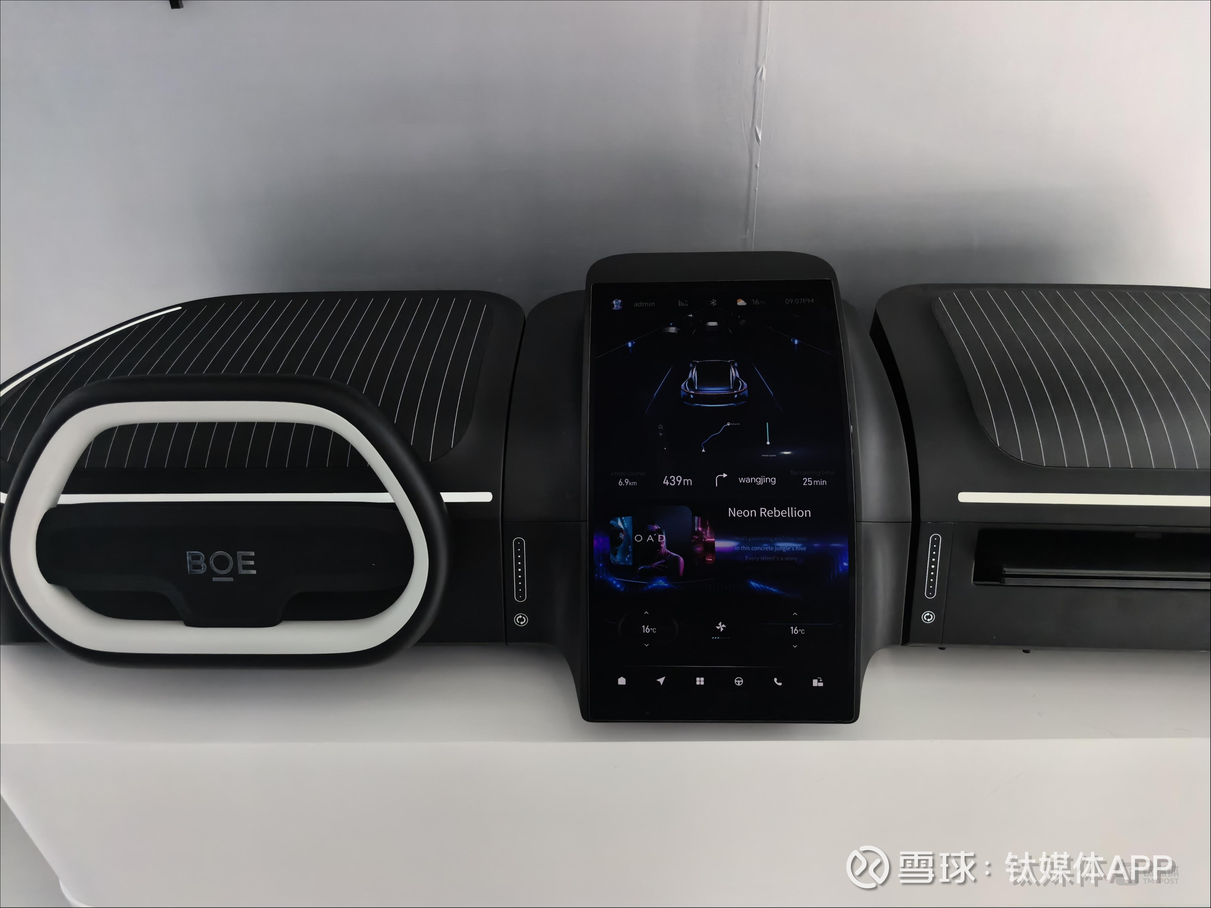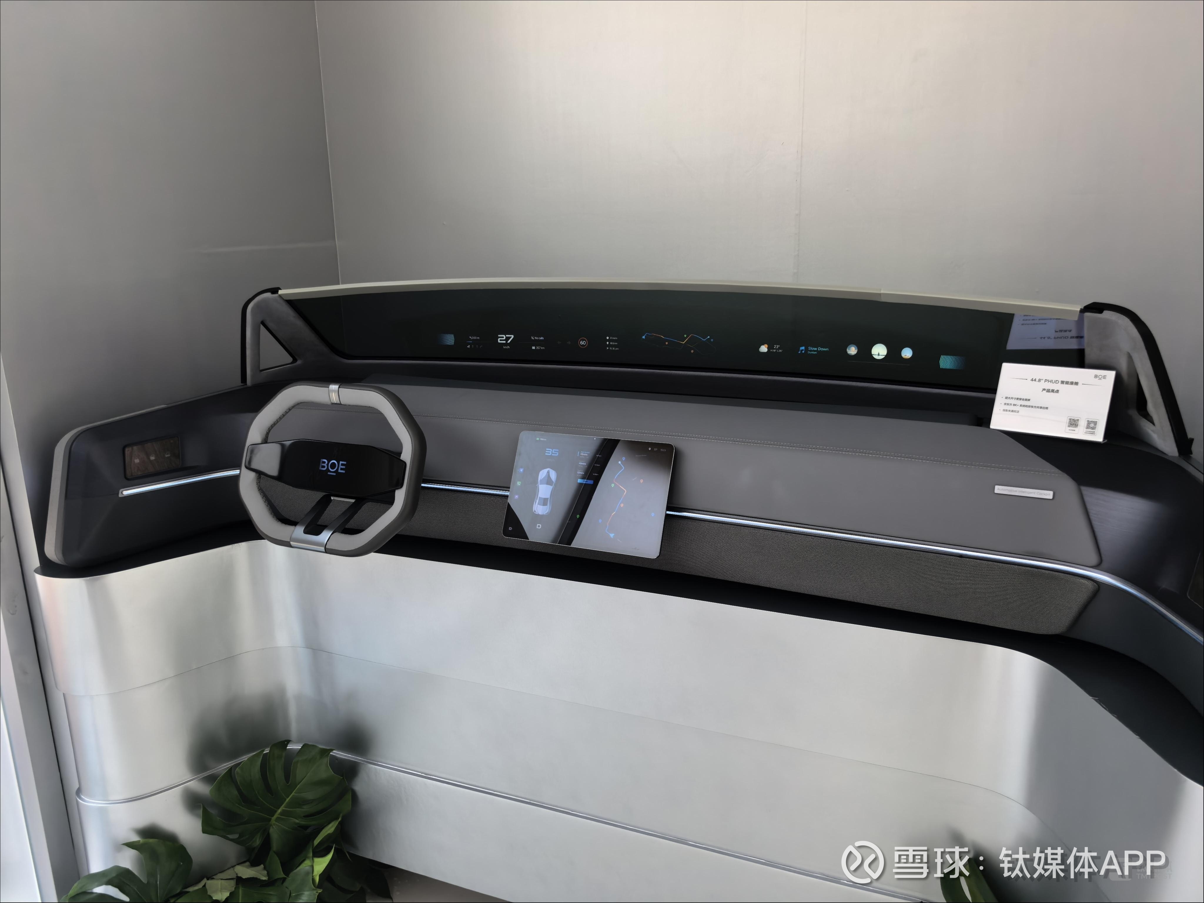 在已量产的方案中,京东方还会根据终端企业的需求,去做深度定制。比如44.8英寸的PHUD(全景抬头显示)智能座舱,采用超大尺寸贯穿式一体化大屏设计,采用京东方精电的氧化物Oxide技术,实现9K分辨率,2850个精细分区实现精准控光,1000000:1 对比度及7000尼特峰值亮度。