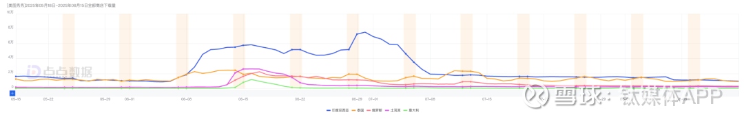 Meitu 在印尼、意大利、俄罗斯、土耳其市场的下载量变化趋势|图片来源:点点数据