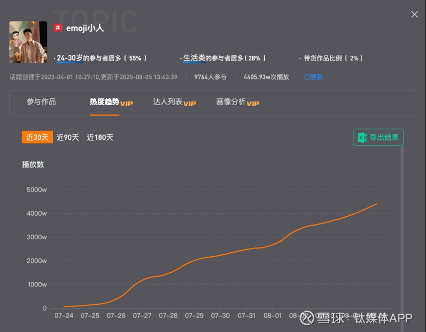 “#emoji小人”词条在7月24—8月5日之间的热度情况,注:RoboNeo属于生产力场景,但由于它近期通过社媒实现了第一波增长,所以这里一并对其增长策略进行分析|图片来源:AI新榜,侵删