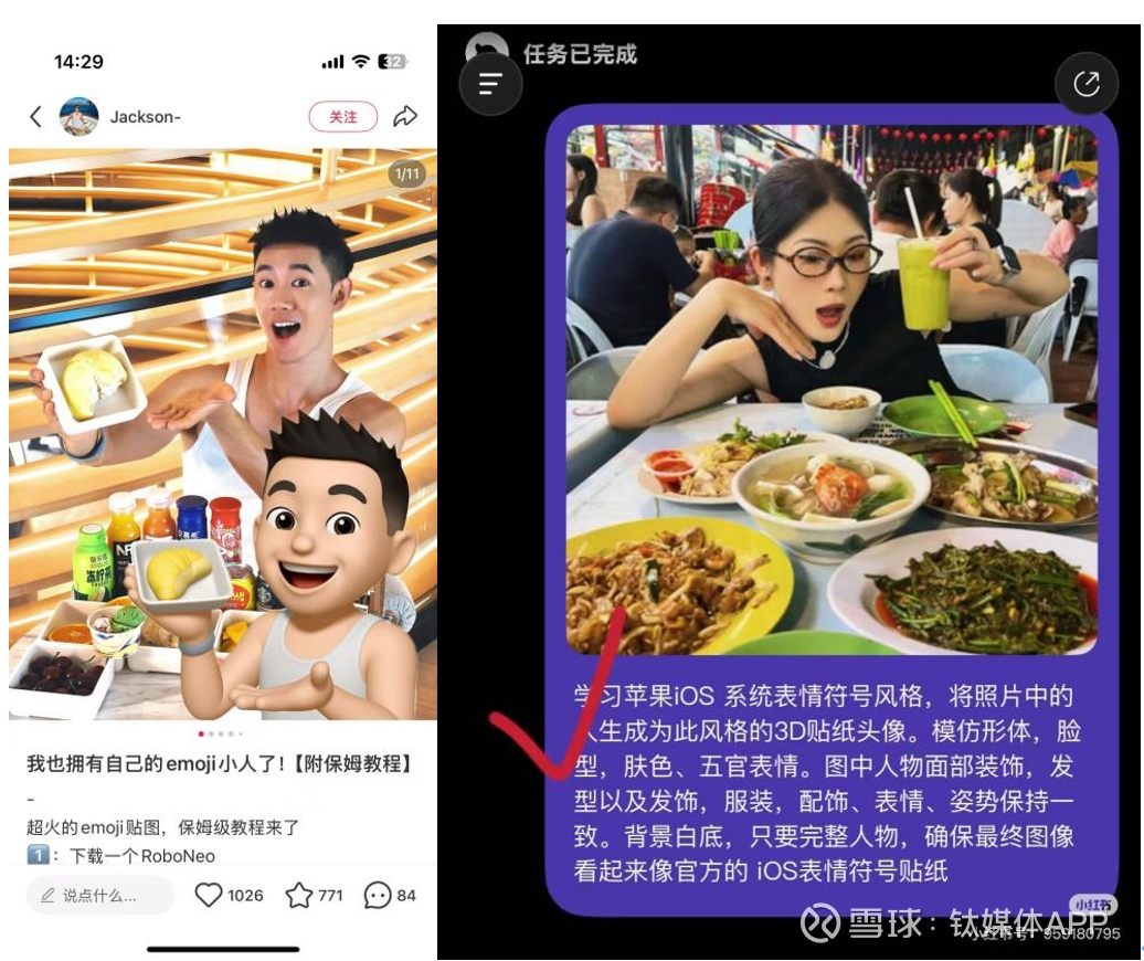 “emoji 小人”的社媒内容(左)、制作过程(右)|图片来源:小红书,侵删