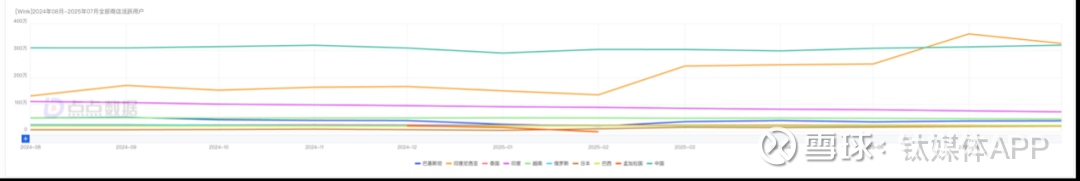 Wink近1年各市场的MAU数据|图片来源:点点数据