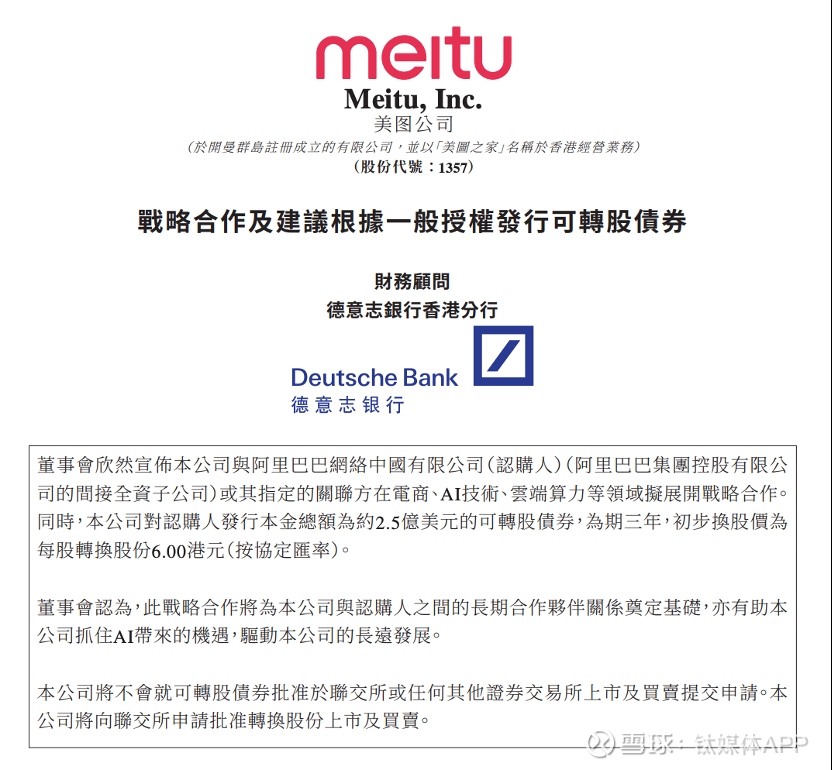 在生产力场景方面,美图上半年最大的成果并不是产品层面,而是敲定了与阿里的合作,美图不仅获得了可转债投资,还会在生态、算力、模型方面与阿里深度合作。